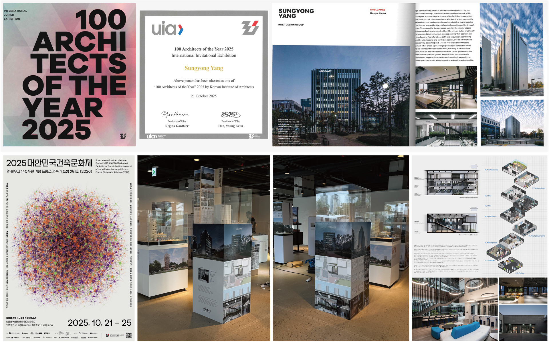 올해의 건축가 100인 국제전에 ‘엔젤게임즈 프로젝트’가 수록되었으며, 대한민국건축문화제에서 개최된 서울 노들섬 전시에 출품되었습니다.
